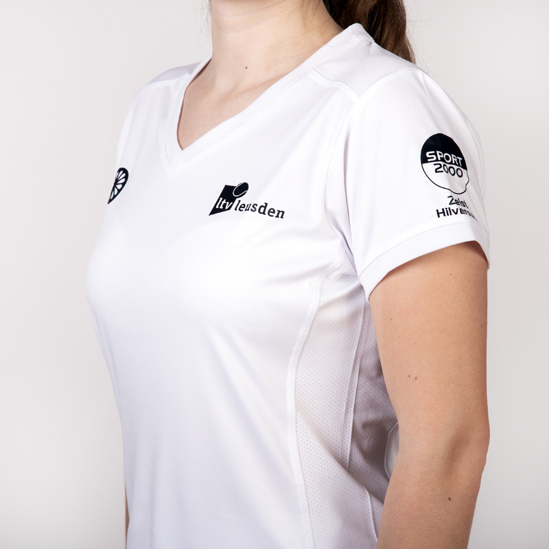 Het witte LTV Leusden shirt voor dames. Dit artikel is er ook in de kleur