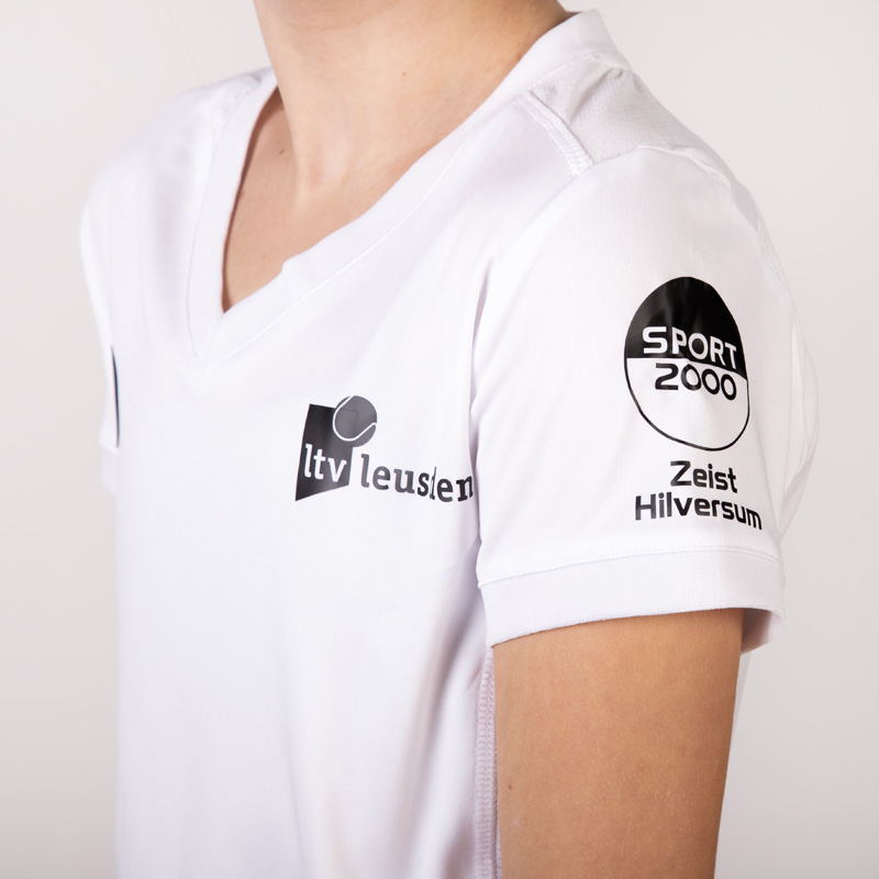 Het witte LTV Leusden shirt voor meisjes. Dit artikel is er ook in de kleur blauw.